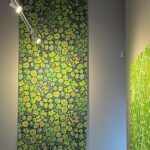 天井高が4メートルを超える大きく白い壁面があります。